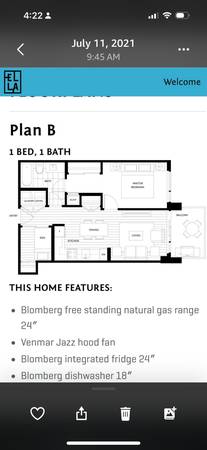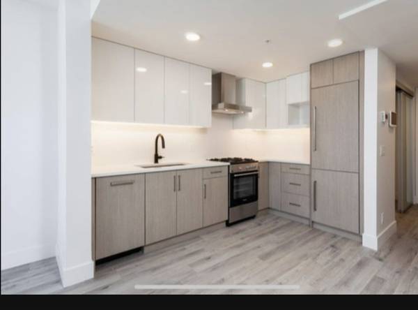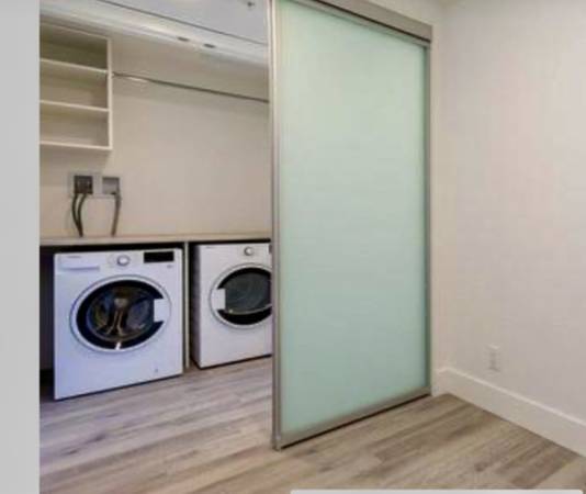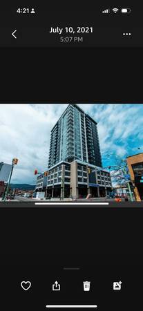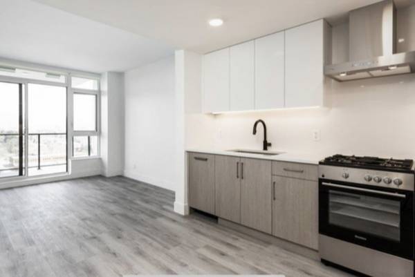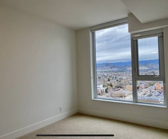 1 Bed plus den(Den/Small bedroom with closet will fit twin bed or bunkbed) 1 bath condo features modern, upgraded finishes and a spacious open floor plan. With fantastic mountain views, condo features high ceilings, stainless steel appliances, quartz countertops, private covered balcony, in-suite laundry, and one covered parking stall included and bike locker.