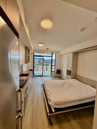 This newly built studio is located on the 8th floor, offering spectacular panoramic views of Kelowna. The bright and contemporary design of the apartment is complemented by its state-of-the-art features, ensuring a comfortable and stylish living experience.