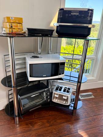 *Kitchen Setup: No stove, but equipped with a slow cooker, hot plate, toaster oven, and air fryer