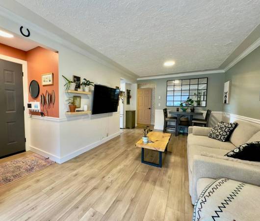 This beautifully renovated half duplex offers over 1,900 sq ft of bright and functional living space in a quiet, family-friendly neighbourhood just steps from the scenic Penticton Creek trails. 1bedroom, 1bathroom, modern paint tones and new flooring throughout. the bathroom have been tastefully updated with new tiling, vanities, and a brand-new shower on the lower level. The spacious kitchen and open layout make everyday living and entertaining a breeze. Step outside into your private, fully fenced backyard