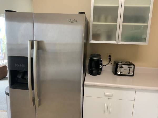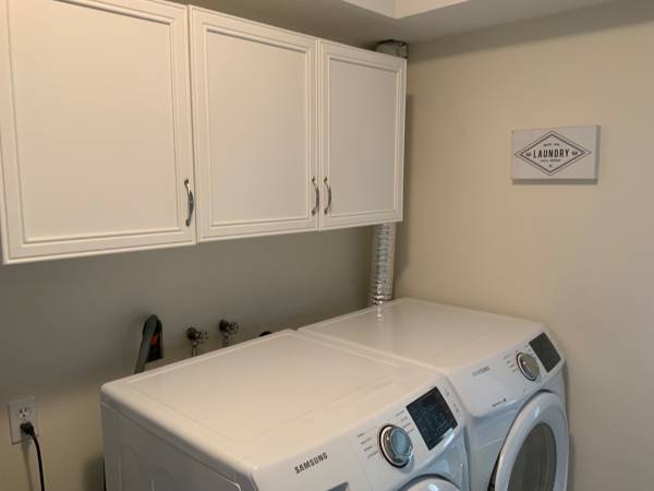 Small appliances include a single serve ‘Tassimo’ coffee maker, ‘Vitamix’ blender, double air-fryer and a 4 wide slot toaster.