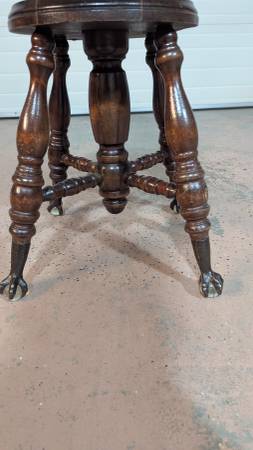Antique, late 19th century, 1890's, Victorian, adjustable seat piano chair, with a spindle back on glass and claw feet. Swivel works perfectly. Manufactured by the Charles Parker Company. Asking $450. Calls only show contact info