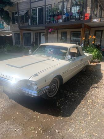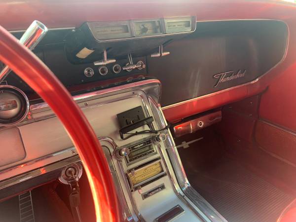 Restored 1964 thunderbird convertible pearl white and interior is red. Power every thing as well as tilt away steering. Custom toneau cover for back set making it a two seater luggage rack and side spot lights controlled up down around by hand in side of car