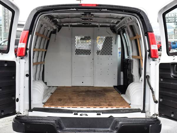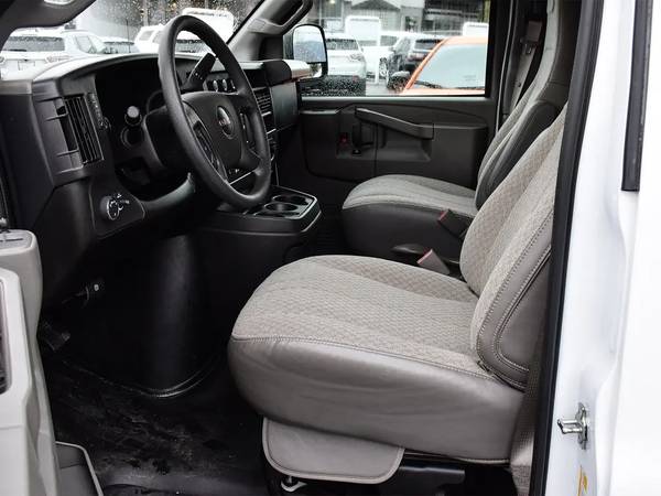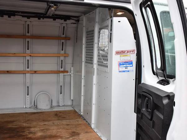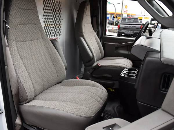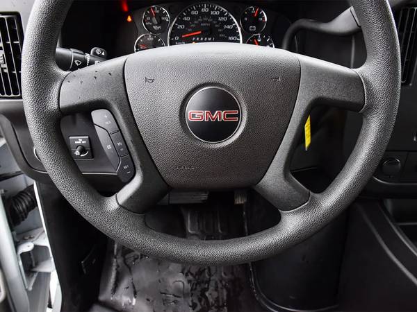 Capacity & build: 2500 series with GVWR ~8,600 lb (3901 kg); 3.42 rear axle ratio | Medium Dark Pewter interior; front bucket seats with custom cloth trim & console with swing-out storage bin; full vinyl floor covering | power windows & power door locks, air conditioning, 120-V power outlet, cruise control, tilt steering wheel, rear vision camera, rear park assist | Active safety: Side Blind Zone Alert, Forward Collision Alert, Lane Departure Warning, Stabilitrak stability control with traction control, daytime running lamps, tire pressure monitor