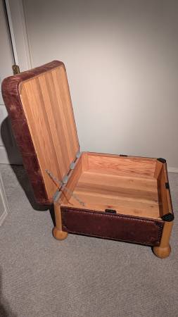 Leather ottoman with lots of storage space. Measurements are 32"x32x17" high. In great condition. Asking $125. Call 250x575x1614