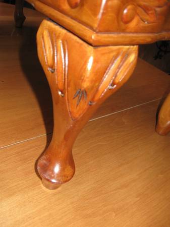 FRENCH PROVINCIAL STYLE, A GORGEOUS FOOTSTOOL THAT IS SOLID AND FIRM AND IN WONDERFUL CONDITION. THE TOP IS UPHOLSTERED IN A BLUE CARPET BAG FABRIC. THE STOOL MEASURES 27 1/2" LONG, 13" WIDE AND 11 1/2" HIGH. PRICED AT $100. PLEASE CALL show contact info