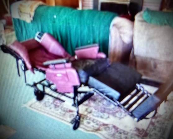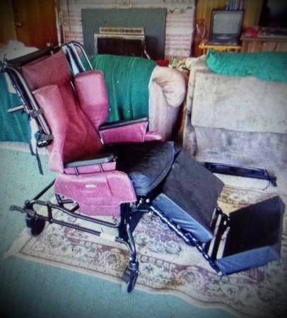 Like new Burgundy BRODA chair. Extra leg padding Head cushion Foot padding Side panels to help leaning Head reclines and legs lift up. It was the perfect chair for Mom. Bought brand new. Only used...