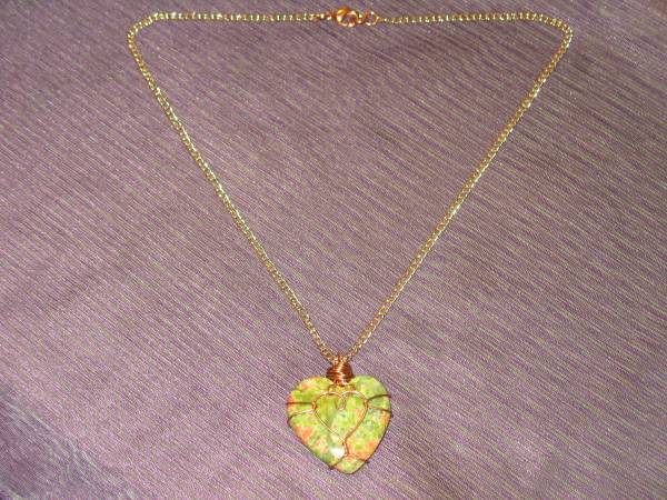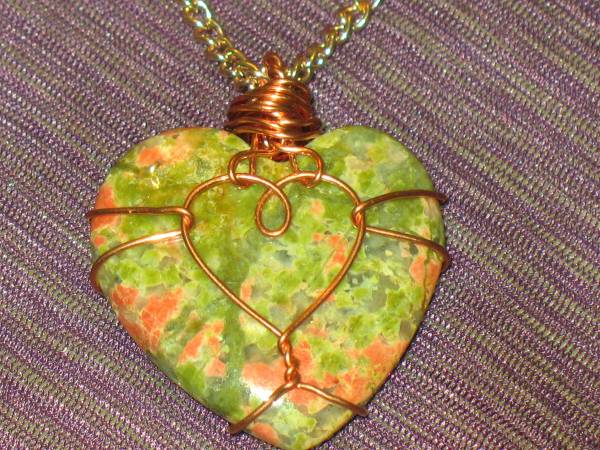 Beautiful Unakite heart shaped pendant necklace with rose gold wire wrapping accents Hand made original
