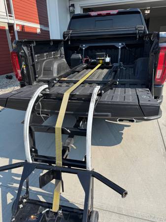 Motorcycle Lift and Load, 5000 lbs winch , fits 6’6” to 8’ truck beds, can be used for golf cart and trikes.( some modifications required). It is also not permanently mounted in your truck bed it uses your hitch receiver. Takes about 5 minutes to remove and store out of the way. $5000. https://youtu.be/6Ftq-WdBZpQ