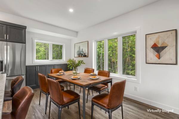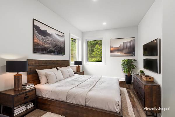 This Eagle Bay property is a rare blend of peace, privacy, and pristine new construction. Perched above shimmering Shuswap Lake, this 2024-built retreat offers contemporary comfort with breathtaking lake, valley, and mountain views. Set on a generous, gently sloping one-acre lot that backs onto crown land, serenity is your closest neighbor. With four spacious bedrooms and four bathrooms, the 2,650 sq ft interior was designed for effortless living. Sunlight pours through oversized windows, illuminating the gourmet kitchen and open-plan main floor that flows seamlessly onto two private decks—perfect for coffee at sunrise or stargazing at night. The master suite is a true retreat, complete with a steam shower and stunning views. Downstairs, a custom bar and entertainment zone invite you to unwind, with space for games, movie nights, or simply relaxing by the wood-burning fireplace. Two SeaCans, wired for 50 amp and heat/AC prep, stand ready to become your dream workshop or creative studio.Extras include tons of RV parking, new septic, central air, water softener, and a registered boat buoy at nearby Shannon Beach. With no GST and a new home warranty, this property is a haven that blends wilderness escape with modern ease. Take a look today.
