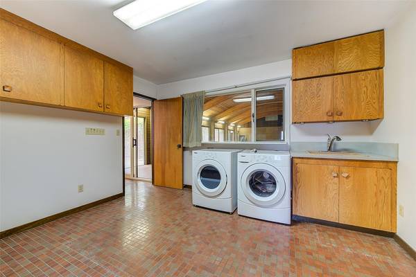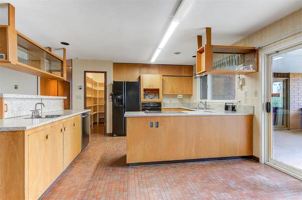 RARE EXECUTIVE ARCHITECTURALLY DESIGNED 6960 SF CONTEMPORARY ESTATE RANCHER WALKOUT, with INDOOR 20x40 CONCRETE POOL, TRIPLE GARAGE ON .93 ACRE OLD GROWTH Treed Lot with VIEW OF LAKE! 1st time on market! This Sprawling custom designed Rancher is sure to impress, full large brick exterior, concrete tile roof. While it is a walk into yesteryear decor, it is timeless in solid quality-built construction and design. Big spacious rooms offer tons of potential for great for entertaining and family life! 3 Brick fireplaces, easy flow floor plan. Large inviting Entry with open stairs down greets you. Massive living room with 2 picture windows, classic sculpted carpets, enjoys a stunning View of the large grounds, Lake, Westside and even Bridge. Extra Large floor to ceiling Brick real wood fireplace. Big Dining room with picture window to View and solid wood pass door to Kitchen. Country sized wood kitchen with built in's, window over sink to View, with open plan to adjacent family room with Brick gas fireplace and glass sliding door to front private courtyard. Large semi-covered Deck. 1469 SF Laminate Wood beamed Dive depth Concrete Pool and swirl pool area with solar heat will impress you! 2 Beds plus den up, 3 bedrooms down. Large Rec Room with Wood fireplace. Huge Workshop area, tons of storage. 600-amp service! Drilled private well, city connection avail. Huge driveway welcomes you, Courtyard parking area. Home is "as is where is" but great bones, ready for your ideas.