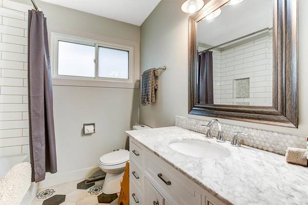 BEAUTIFULLY UPDATED “OLD GLENMORE” RANCHER WALKOUT HOME WITH DETACHED STUDIO SUITE SITUATED ON A PARK-LIKE MATURE LANDSCAPED LOT with room for a Pool! Modern soft white decor is sure to please! Remodelled White lacquered shaker eat-in kitchen features quartz counters, white subway tile backsplash, white apron sink, window overlooking back yard, tons of cabinets, and open shelving in cute cappuccino area. Home was expanded on main adding a large Living Room with huge picture windows overlooking the deck and amazing yard. Separate Dining room area off entry and open stairs. Convenient main floor laundry/mudroom with shiplap feature wall, and door to back patio. 3 big Bedrooms up, Primary bedroom with corner windows and walk in closet. Updated 4-piece main bathroom with soaker tub and modern hex tile floors. 2 huge Bedrooms down, plus family room and gym/flex room. 2024 gas hi efficiency furnace, central air. 2 storage rooms. Glass sliding doors to an underdeck workshop area and back yard. Cute Added semi-attached separate Lofted Legal studio suite is fully equipped, separate entrance and fenced patio and parking - a great mortgage helper or easy short term rental pending city rule changes allowing. Fenced Mature Landscaped yard is Gorgeous! Private and pool sized, and new concrete patio for outside enjoyment. Attractive Hardiplank, painted stucco siding. Tons of parking. Close to schools, Golf and Country Club, Rail trail and Restaurants in desirable Old Glenmore!