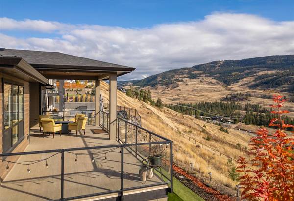 GORGEOUS EXECUTIVE WALK OUT RANCHER WITH "DRAMATIC" UNOBSTRUCTED 180 DEGREE "MORNING SUN" VIEW OVER BLACK MOUNTAIN GOLF COURSE, MOUNTAINS AND VALLEY and a SUITE...WOW! Impressive Spacious Open plan with huge windows that take in the amazing View! Indirect Triple Garage and Exposed aggregate driveway offers an impressive Entry for guests and parking. Step into this Dream home and you love the High Ceilings, Quality Wide plank engineered OAK hardwood floors, and massive windows that flood the home with natural light. Massive Great room with feature gas fireplace has room for your large furniture pieces. Modern and Classy 2 tone wood kitchen with Upscale Professional series S/S appliances, Gas stove with Glass stove hood, Huge island, pullouts, is a Chef's Dream! Large walk though butler's pantry with quartz counters and second sink. Big Mudroom with cubbies to huge triple Garage for all the Toys! Spacious open dining room with glass doors to a huge semi covered deck for seamless in/out enjoyment of the stellar view. Primary Bedroom is fit for a King, with a scintillating morning sun view! Walk in closet with built-ins. Lavish 5-piece Ensuite with Queens Royal free standing tub, massive walk in double tiled shower, raised under lit counters and more! 2 Beds up, 2 Beds down, big family room, and Big Glass enclosed patio down set up for a gym! Self-contained 1 bed Suite is beautiful and bright. An amazing home and property with no one building behind you to the View...Wow! (id:4069)