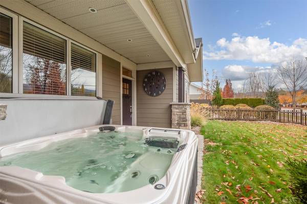 OPEN HOUSE SAT NOV 15 11am-1pm. UPSCALE Rancher style living in this beautifully appointed Townhome in desirable Gable Craft! Ideally situated with a 180-degree view of Mission Creek Golf course, on an extra-large lot allowing parking for 5! Minutes from town, Lake, Beach, College, and Orchard Park. Perfect for golf enthusiasts! Stylish warm interior with High 9’ ceilings with recessed ceilings and a Rock gas feature fireplace in the open Great room, creates an inviting atmosphere for relaxation and entertainment. Gourmet Rich espresso shaker-style maple Kitchen with ample storage, granite counters, island. Easy-maintenance laminate flooring throughout the main areas, cozy plush carpets in bedrooms. Separate laundry room. 2 Big Bedrooms. Primary Suite features solid wood shiplap walls, a large walk-in closet, door to a back patio with rough-in for hot tub, and a huge picture window with views of the Golf course. Luxurious 5-piece ensuite with soaker tub and frameless glass shower. Large 2nd Bedroom is spacious, perfect for guests or family. 3-piece Ensuite with big walk in glass shower with built in seat. Impressive expanded outdoor Stone block Patio offers open and covered pergola areas perfect for entertaining, BBQs, outdoor enjoyment. 5 PARKING SPACES on your lot! Extra Large 23x20'7 Garage with attractive Polyprotic floors. Large front row lots allowed 3 outside spaces, and permission for RV parking from April through October...Wow!