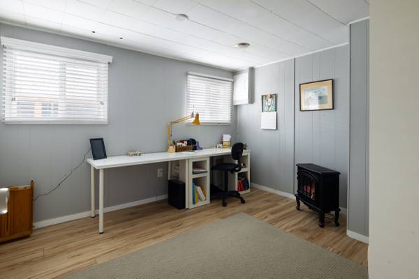 This charming 2-bedroom, 1-bathroom mobile home in Valmarie Mobile Home Park offers a bright and functional living space spanning approximately 900 square feet. The interior features a spacious living room highlighted by a classic bay window that brings in plenty of natural light, while the adjacent dining area includes built-in cabinets for convenient storage. In the kitchen, you will find a dedicated pantry that helps keep the space organized and efficient for daily meal prep.