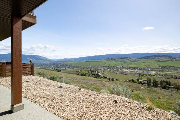 The walkout lower level offers two more bedrooms, a 4-piece bathroom, a spacious rec room, and a finished theater or flex room of approximately 400 sq ft. There is also a large storage room, utility space, and a covered patio to continue enjoying the view. The basement has hydronic floor piping in place for future use. Built with a high-efficiency furnace, A/C, hot water tank, and a 12" ICF concrete party wall for privacy. Wiring is also in place for an electric fireplace. This quiet hillside community includes low-maintenance landscaping and snow removal and is just minutes to Okanagan Lake and downtown Vernon.
