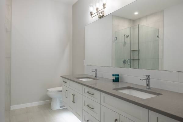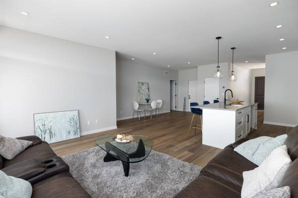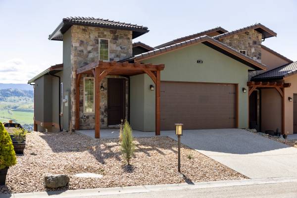 Enjoy panoramic lake, valley, and city views from this brand new, upgraded 3-bedroom, 2.5-bathroom half-duplex near The Rise golf course. This home offers over 400 sq ft more finished space than comparable units for added comfort. The main floor features a bright, open-concept layout with 9' ceilings, large windows, and a modern kitchen with upgraded cabinetry, full stone countertops, underhung sinks, microwave wiring, and a large island with bar seating. A premium lighting package adds style, and the living room opens to a covered deck with sweeping views. The primary bedroom includes a walk-thru closet and a luxurious ensuite with heated tile floors, a floating vanity with automatic under-cabinet lighting, a glass shower, and a soaker tub. Also on the main floor are a half bath, laundry room, and access to a double garage wired for EV charging.