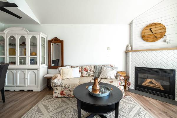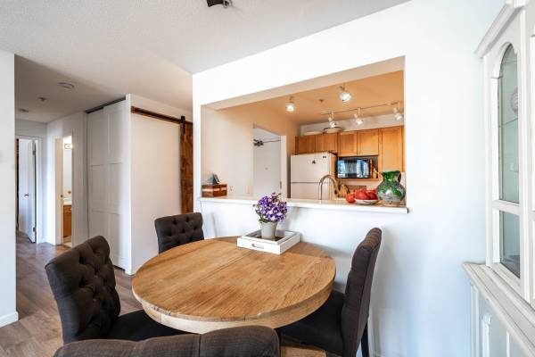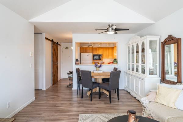 This beautifully maintained unit features updated flooring throughout and a bright, open layout. The spacious kitchen provides abundant cabinetry and flows seamlessly into the dining area, ideal for everyday living or entertaining. Relax in the cozy living room, complete with a corner gas fireplace and direct access to a private deck—perfect for taking in the views and sunlight.
