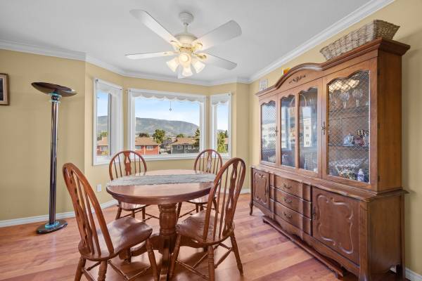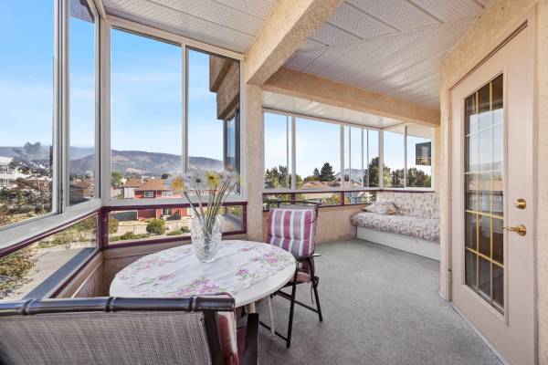 Welcome to Linden Estates! This top floor corner unit offers a bright and inviting living space with plenty of natural light. Perfectly situated close to the elevator, this home provides exceptional convenience for everyday living, especially when bringing in groceries. The kitchen is spacious with ample cabinetry, and the unit features a mix of laminate and tile flooring for easy care and style. Step out to the covered and enclosed patio, a private retreat to enjoy year-round. Linden Estates is a 55+ community, known for being very well maintained and offering a peaceful lifestyle. Ideally located, you’re just minutes to grocery stores, transit, and surrounded by some of the area’s best wineries. This condo combines comfort, convenience, and a welcoming community—perfect for those looking to enjoy the best of Okanagan living. MLS® 10361096