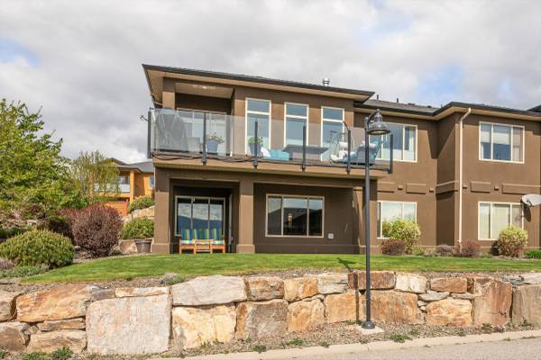 Welcome to this beautifully updated semi-detached townhome in the highly desirable Sonoma Pines community! Step into the stylish, modern custom kitchen featuring white shaker-style soft-close cabinets extended to the ceiling, sleek quartz countertops, stainless steel appliances, a convenient coffee station, a wave-activated Moen kitchen faucet, and updated lighting. The open-concept living room boasts newer laminate flooring, a cozy gas fireplace, and stunning lake views. Adjacent, the dining room includes custom built-in cabinetry and opens onto a spacious deck with topless glass railings—perfect for soaking in the panoramic lake views. The deck also comes equipped with gas hookups for BBQ. The bright and inviting primary bedroom features lake views, newer carpet, a walk-in closet, and a 4-piece ensuite with Corian counters. A second bedroom, full bathroom, and convenient laundry area complete the main floor layout. Downstairs, you'll find a spacious family room with an electric fireplace, a flex room ideal for a home office or gym, a third bedroom, another full bathroom, a large storage room, and access to a lower covered patio with hot tub hookup—perfect for year-round enjoyment. Additional highlights include a double garage, flat driveway, and low-maintenance living in a fantastic location close to golf, shopping, and Okanagan Lake. Sonoma Pines amenities include a clubhouse with gym, library, billiard room, and sizeable social room with a full kitchen available to rent. Secure RV parking is also available on-site. This is the perfect blend of comfort, style, and breathtaking views—don’t miss it. NO PTT, PREPAID LEASE. MLS® 10372797