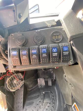 Lighting: rock lights, light bar, lighted whip, Rockford stereo with 5 speakers, particle seperator. 4500 lb winch flip up windshield
