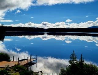 During the summer, you can bask in the sun on the dock, swim in the lake from the low bank, sandy beach and enjoy the beachfront fire pit while listening to the haunting calls of loons across the water. In winter, cozy up by the fireplace after a day of cross-country skiing, snowmobiling, snowshoeing, or ice fishing. Rainbow trout are abundant, and guests can use a 10’ aluminum rowboat at no extra charge. (outboards restricted to 10 H.P.)